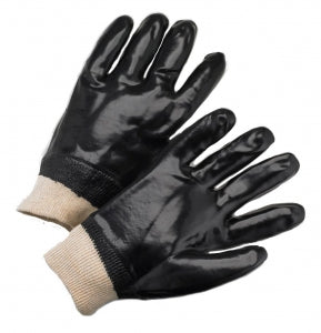 Black PVC on a interlock liner and a rough finish for good grip and abrasion resistance. A cotton interlock lining wicks away moisture and keeps hands cool and dry. PVC coated, Knit wrist, standard, black, Interlock lining, Industries & Applications: Maintenance, Utilities - Protection Need: Chemical Resistant, Water Resistant.