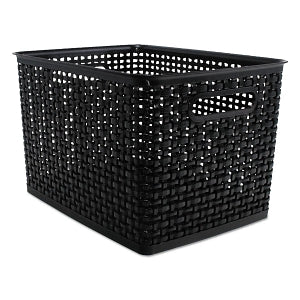 Advantus Plastic Weave Bins - Black 13.88" x 10.75" x 8.75" Plastic Weave Bin - AVT-40328