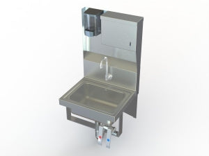 Product Information: Stainless Steel Hand Sink, Knee Valve, Soap / Towel Dispenser