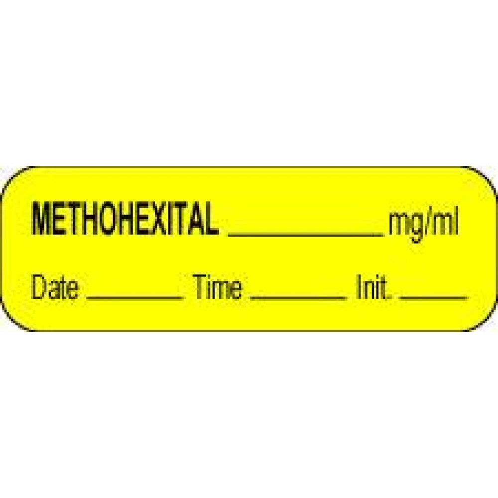 Anesthesia Label With Date, Time & Initial (Paper, Permanent) Methohexital Mg/Ml 1 1/2" X 1/2" Yellow - 1000 Per Roll