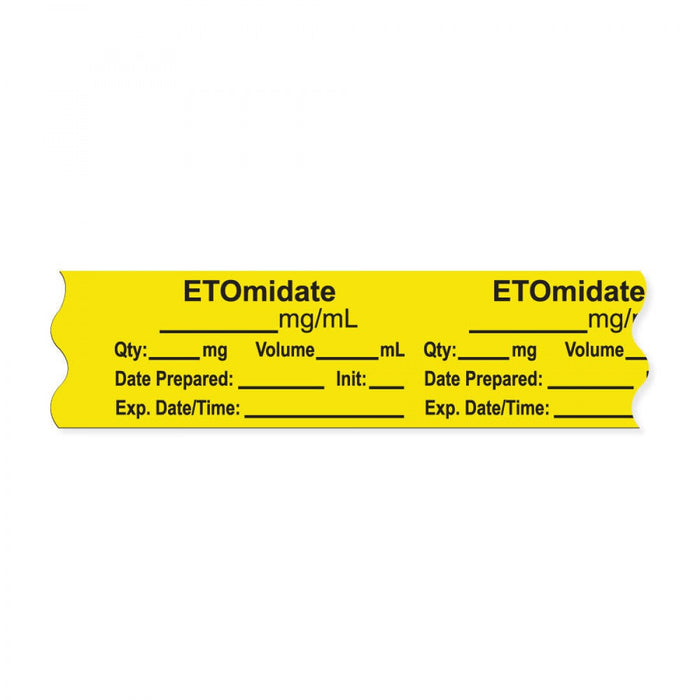 Anesthesia Tape, With Expiration Date, Time & Initial (Removable), "Etomidate Mg/Ml" 3/4" X 500", Yellow - 333 Imprints - 500 Inches Per Roll