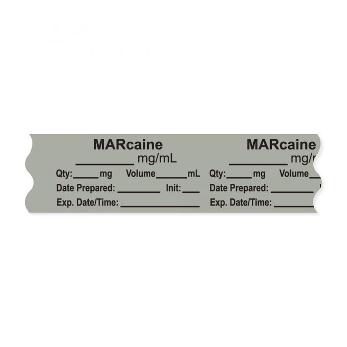 Anesthesia Tape, With Expiration Date, Time & Initial (Removable), "Marcaine Mg/Ml" 3/4" X 500", Gray - 333 Imprints - 500 Inches Per Roll