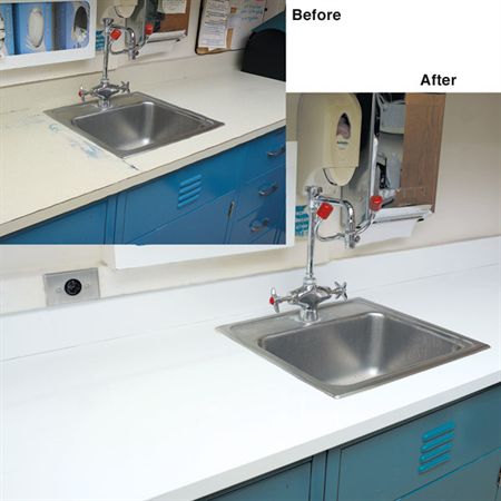- Cuts easily for custom resurfacing around sinks and instruments