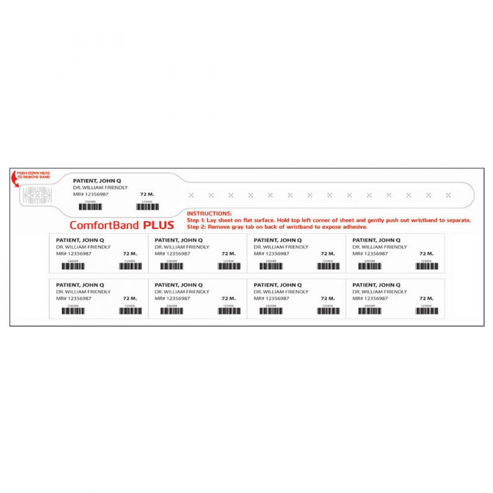 - Each sheet has an adult wristband & eight labels (2.5†L x 1†W)