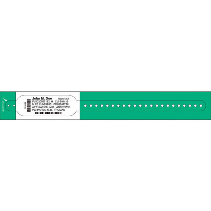 Comfortband Thermal Wristband 1 1/8" X 10 13/16" 1 1/2" Core - Adult - Kelly Green - 200 Per Box - Our Softest Wristbands Specially Designed For Patients With Sensitive Skin.