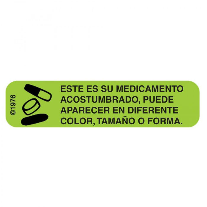 Communication Label (Paper, Permanent) Este Es Su Medicamento 1 9/16" X 3/8" Green - 500 Per Roll, 2 Rolls Per Box