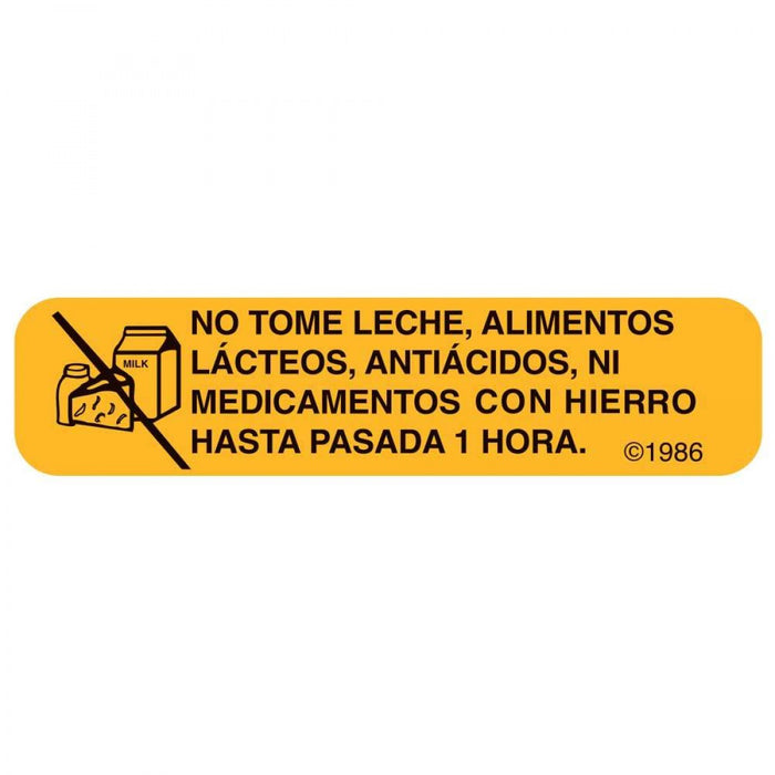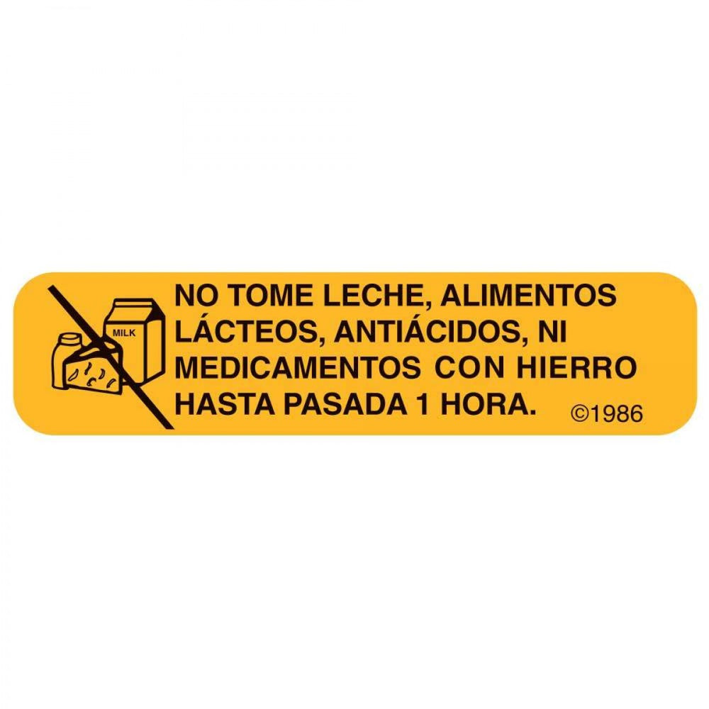 Communication Label (Paper, Permanent) No Tome Leche, 1 9/16" X 3/8" Gold - 500 Per Roll, 2 Rolls Per Box