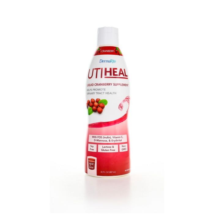 DermaRite UTIHeal is liquid cranberry nutrition for urinary tract health. With a great taste, this liquid supplement is ready to serve and helps to prevent antibiotic resistance. Liquid nutrition features better absorption than tablets, and hasno known drug/food interactions. Perfect for personal use at home or clinical use in hospitals, nursing homes, or clinics, UTIHeal may be administered orally or through a feeding tube.
