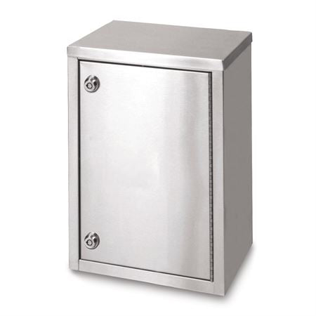 - Durable, heavy-duty stainless steel design with a piano-hinged door