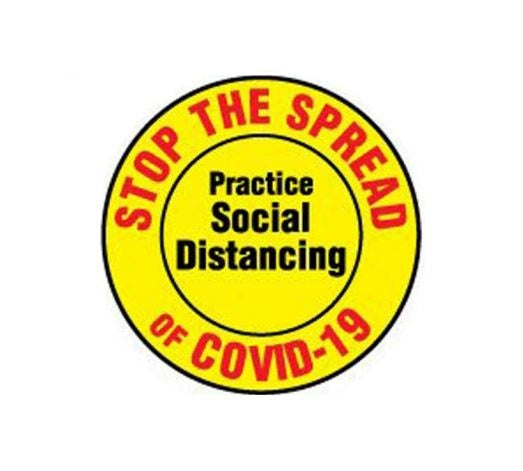 Product Information: "Stop the Spread of COVID-19/Practice Social Distancing" Safety Sign, Round Yellow, 4"