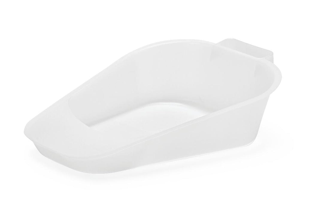 - This smaller bedpan features a tapered front so that it slides easily under the body
