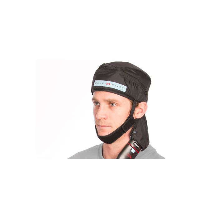 The Game Ready Cryo Cap is an ATX wrap that provides targeted compression for sports related head injuries. The Cryo Cap features an adjustable foredhead closure, easy on/off soft chin strap, customizable thermal insulation for your patient's ears and forehead. The Cryo Cap includes the cap itself. A chin strap, and sleeve. Replacement sleeves and chin straps are available separately. The Cryo Cap is designed to fit heads measuring up to 28' in circumference.