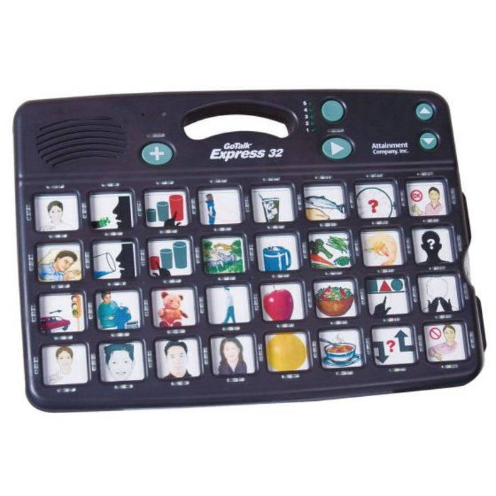 The GoTalk 32+ features five levels that offer the speaker a capacity of 163 messages. This product includes a quick record option, message keys that record 7 seconds and core vocabulary keys that record 17 seconds. This product also features volume control, built-in handle and keyboard and a level lock and record lock. Optional GoTalk Overlay Software is available to quickly create great-looking, personalized overlays. Excellent for personal and professional use, and includes a 2 year warranty.