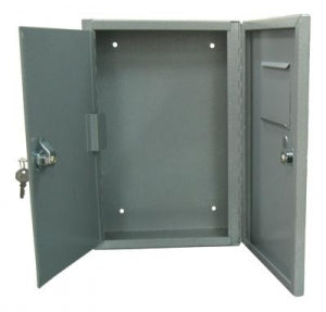 Intended use: safe - storage cabinet with lock - Double door with individual key for each door - Keys cannot be removed when lock is in open position - Doors suspended on full length piano hinges - High quality steel - welded construction - Safe can be set into the wall or wall mounted - Two or Three adjustable removal steel shelves - Net weight: Item 3007 - 12 lb and Item 3008 - 22 lb