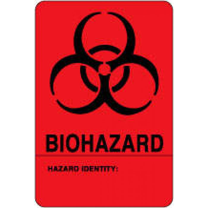 LABEL PAPER PERMANENT BIOHAZARD HAZARD 2" X 3" FL. RED 500 PER ROLL