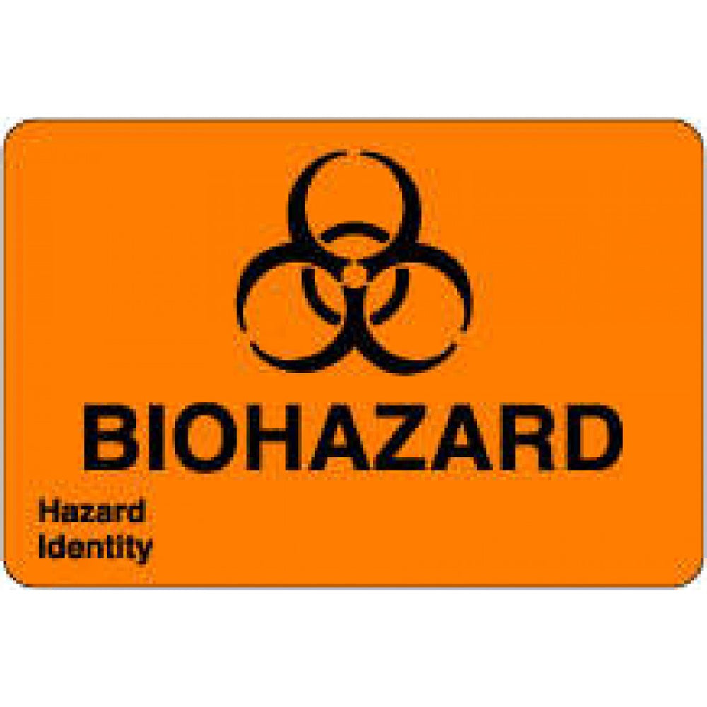 Label Paper Permanent Biohazard Hazard 3" X 2" Fl. Orange 500 Per Roll
