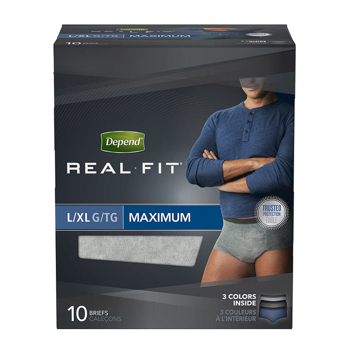 BG/10 - Depend Real Fit Briefs for Men, Large/X-Large fits Waist 38-50"