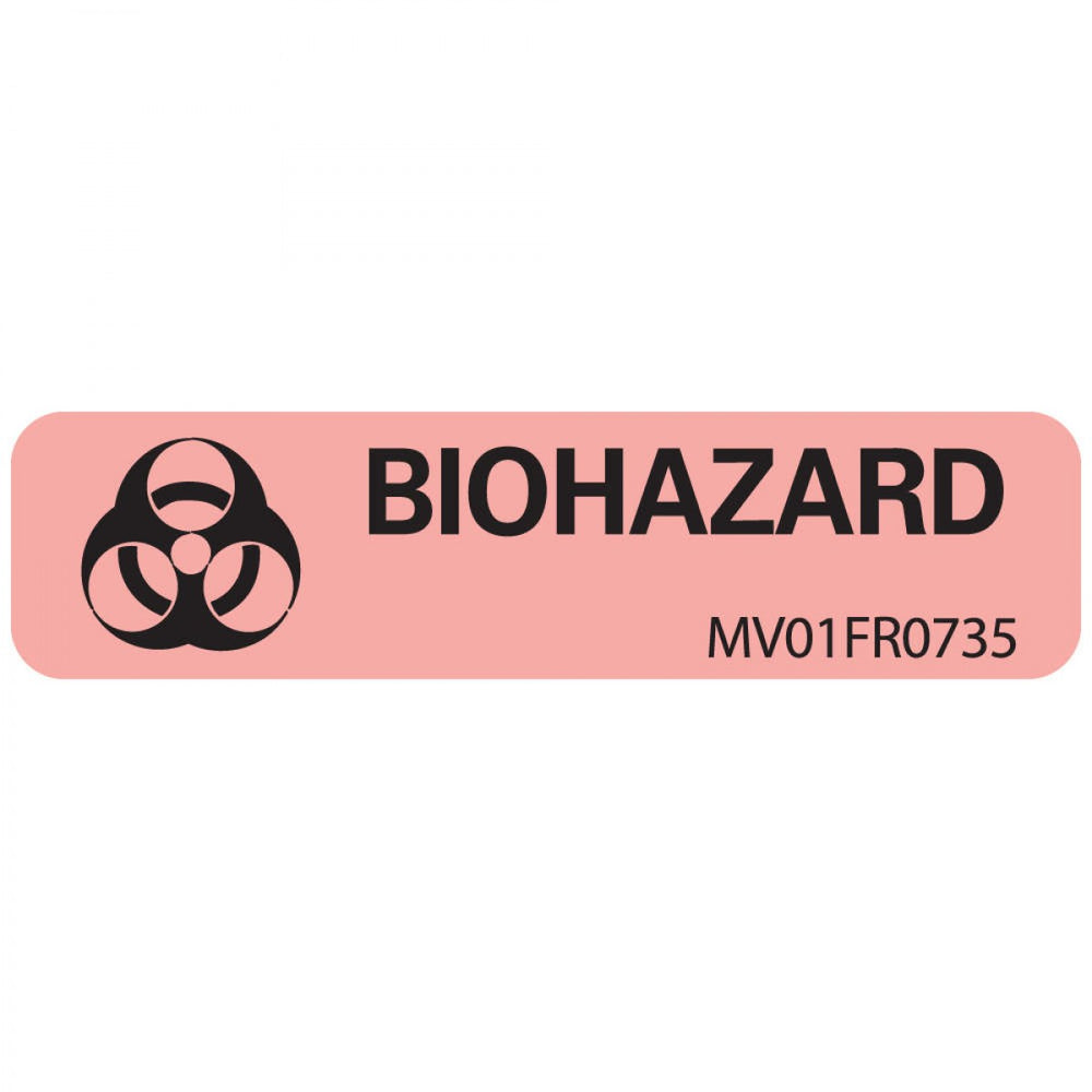 LABEL PAPER PERMANENT BIOHAZARD 1" CORE 1 1/4" X 5/16" FL. RED 760 PER ROLL