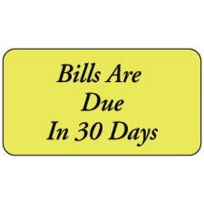 Label Paper Permanent Bills Are Due In 30 1 5/8" X 7/8" Fl. Yellow 1000 Per Roll