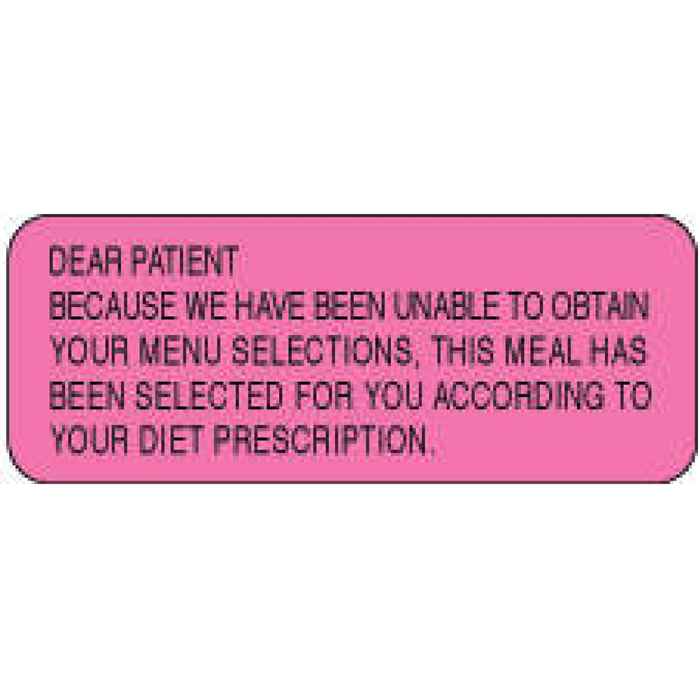 Label Paper Permanent Dear Patient Because 2 1/4" X 7/8" Fl. Pink 1000 Per Roll
