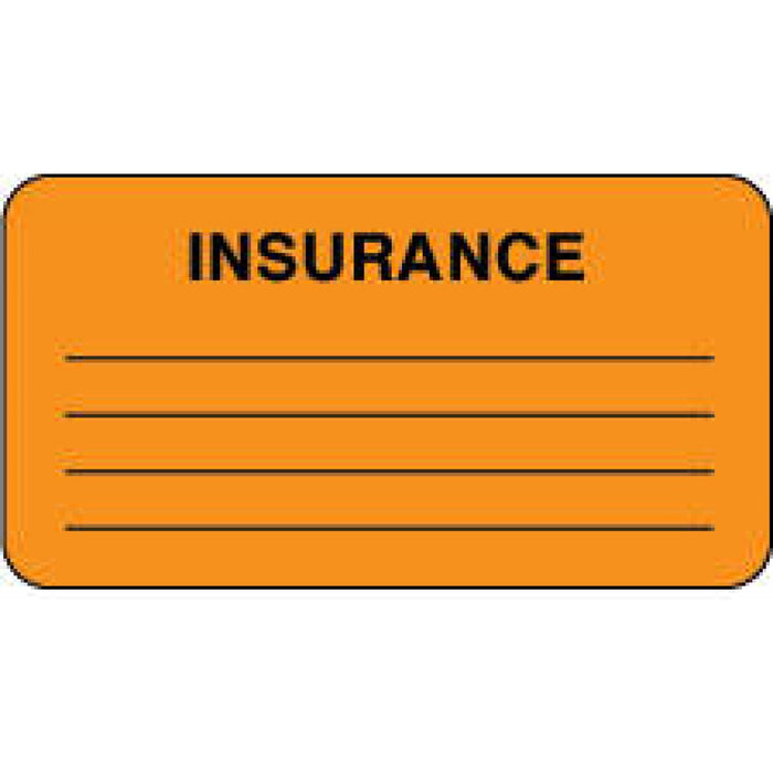 LABEL PAPER PERMANENT INSURANCE 1 5/8" X 7/8" FL. ORANGE 1000 PER ROLL