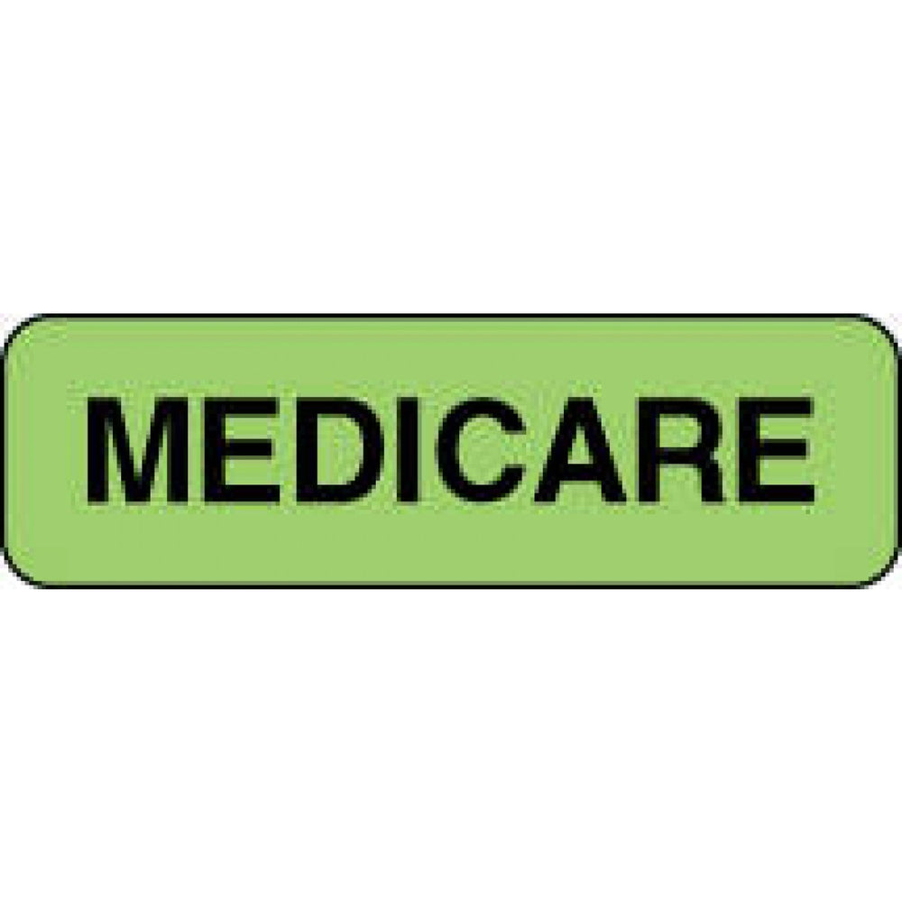 LABEL PAPER PERMANENT MEDICARE 1 1/4" X 3/8" FL. GREEN 1000 PER ROLL