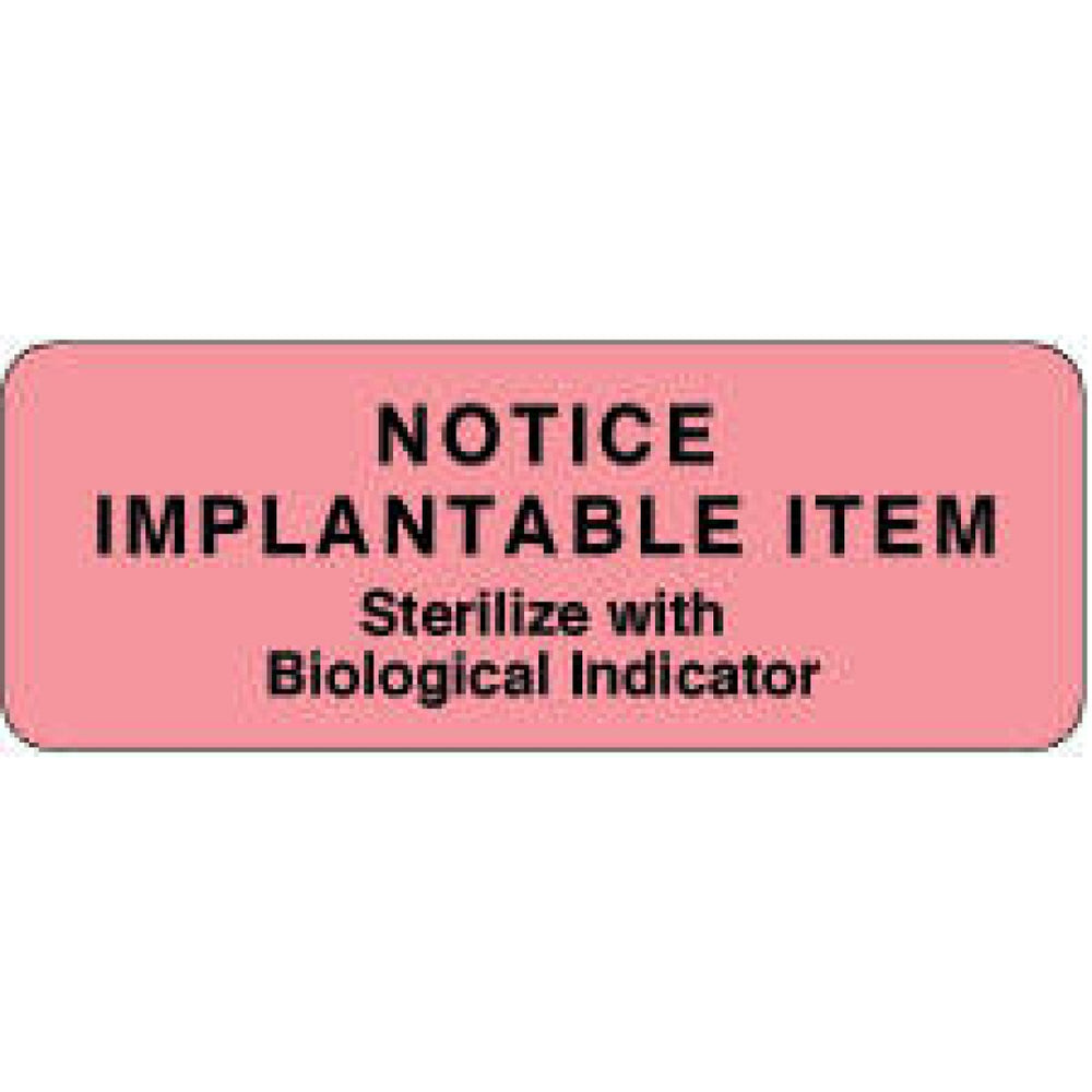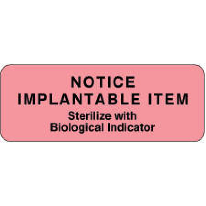 Label Paper Permanent Notice Implantable 3" X 1 1/8" Fl. Pink 1000 Per Roll