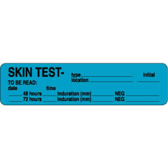 Label Paper Permanent Skin Test- 4" X 1" Blue 500 Per Roll
