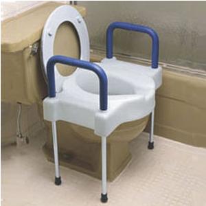 Extra wide Tall-Ette elevated toilet seat with aluminum legs. Features contoured, soft foam arm rests designed to assist the user in sitting down or rising from the seat. Ideal for people who need extra assistance because of significant lower extremity weakness or poor balance. Legs are height-adjustable. Adds 4" (10 cm) to the bowl height and eliminates the need for a commode or added toilet seat frame. Width is 22-1/2" (57 cm).
