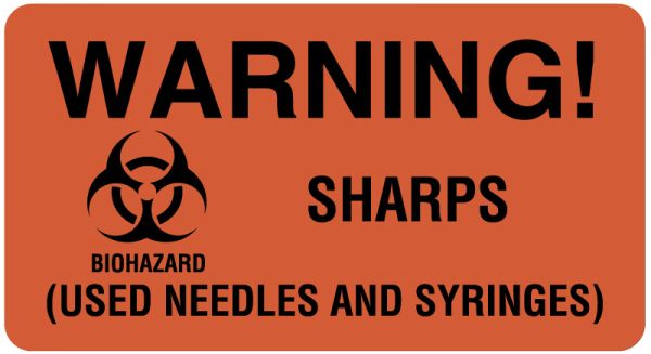 Product Text: WARNING! BIOHAZARD SHARPS USED NEEDLES AND SYRINGES