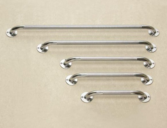 These chrome-plated Low Profile Wall Mounted Grab Bars are made of 1-1/4" (3.2cm) diameter heavy-duty steel for strength and durability.Bars feature a textured, non-slip finish.