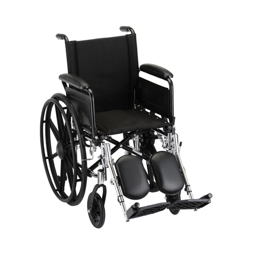 The Lightweight Wheelchair 16 in. comes equipped with flip back full arms, as well as elevating leg rests. It also features dual axle positions for seat height conversion and flame retardant black nylon upholstery.
