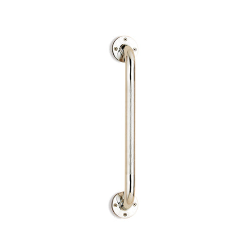 The 16 inch Wall Grab Bars are chrome with knurled handles. They can be used horizontally or vertically and come complete with mounting hardware. The weight capacity is 250 lb. They have a 1.5″ wall stand off, 2.5″ fixed flange, rubber gaskets, and 1″ diameter of tubing.