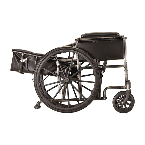 The Recliner Wheelchair comes equipped with detachable full arms and elevating leg rests. It reclines to a full 180 degree position and is made with flame retardant black vinyl upholstery. Industry compatible accessories are also available. (Please note that the numbers for weight, back height from seat, and overall height in the specifications section include the headrest).