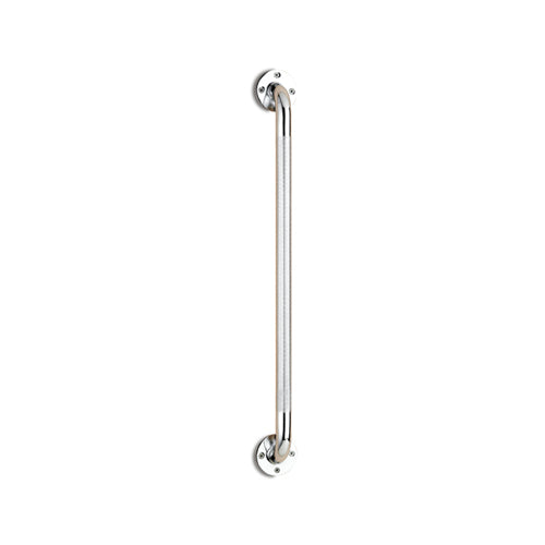 The 24 inch Wall Grab Bars are chrome with knurled handles. They can be used horizontally or vertically and come complete with mounting hardware. The weight capacity is 250 lb. They have a 1.5″ wall stand off, 2.5″ fixed flange, rubber gaskets, and 1″ diameter of tubing.