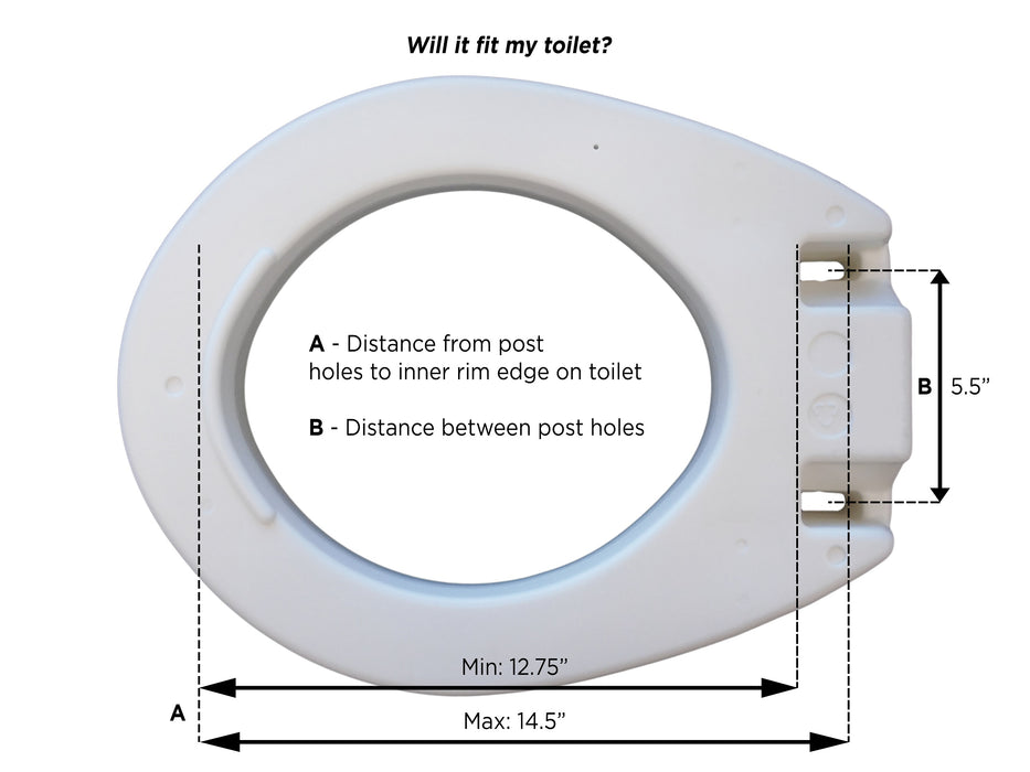 Bolts directly to the toilet for added safety and adds 3.5″ to the height of the toilet seat to aid in sitting and rising. Unlike most elevated seat aids, the 8342-R allows the original seat lid to be used. Installs easily.