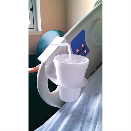 - Makes drinks easily accessible for promotion of fall-prevention strategies