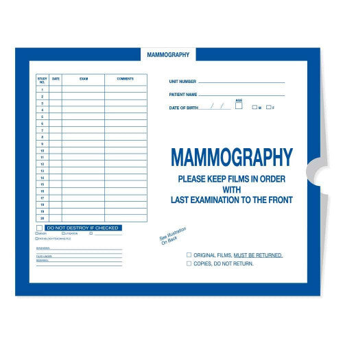 PDC Healthcare Category Insert Jackets - Mammography Jacket Insert, 10.5" x 12.5", Dark Blue - CJDE-MA1