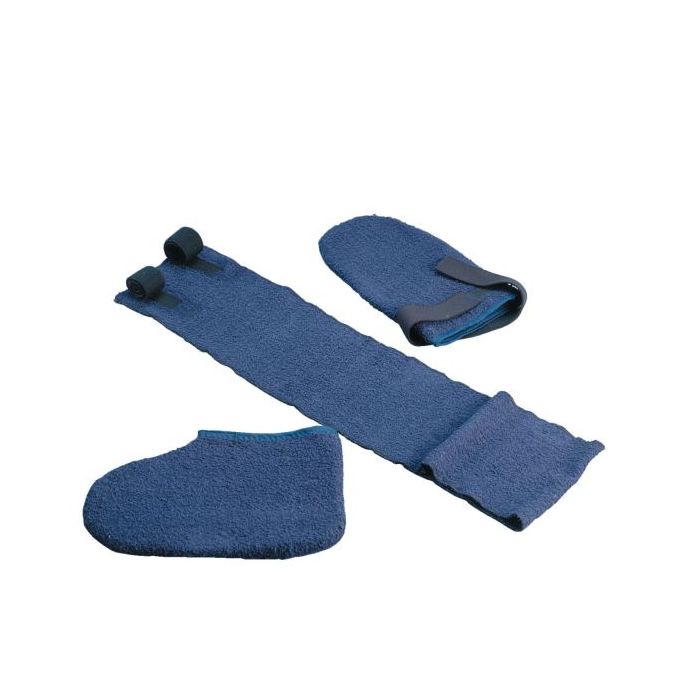 Garments are made of terry cloth, and are machine-washable wrap made to prolong the therapeutic heat generated by paraffin treatments. The system consists of a plastic liner that is covered by an insulation mitt, boot or wrap. Wrap is great for elbow treatments.