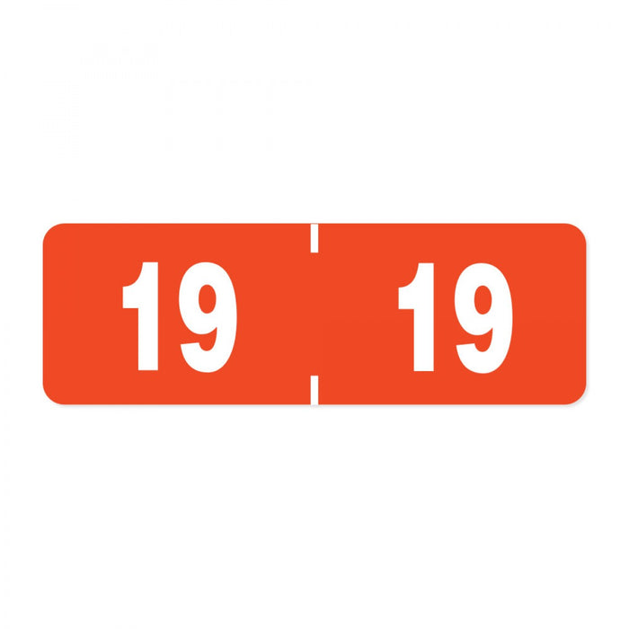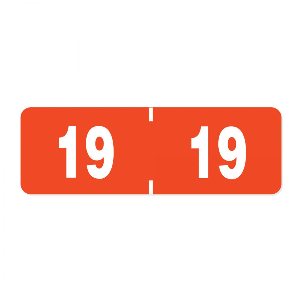 Pos Compatible Color Code Label Year "19" 1-1/2 X 1/2 Orange Mylar Permanent 500 Per Roll