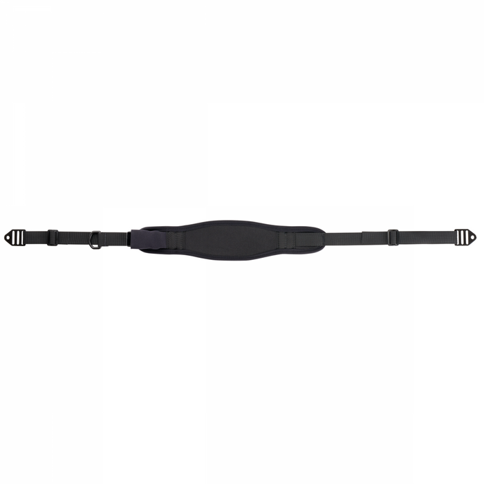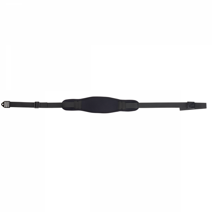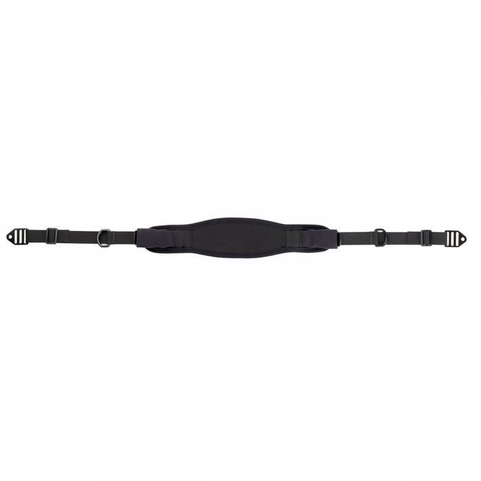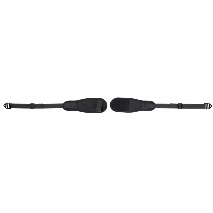 The Padded Wheelchair Chest Strap is constructed from 7 millimeter neoprene that allows for a comfortable amount of stretch. The option to choose from side release buckles, or hook & loop closures is available. The side-release buckles on each side of the pad are recessed in neoprene sleeves so the user's arms do not rub on the buckles. The hook and loop chest strap fastens in the middle of the strap and has a finger loop for easy removal.