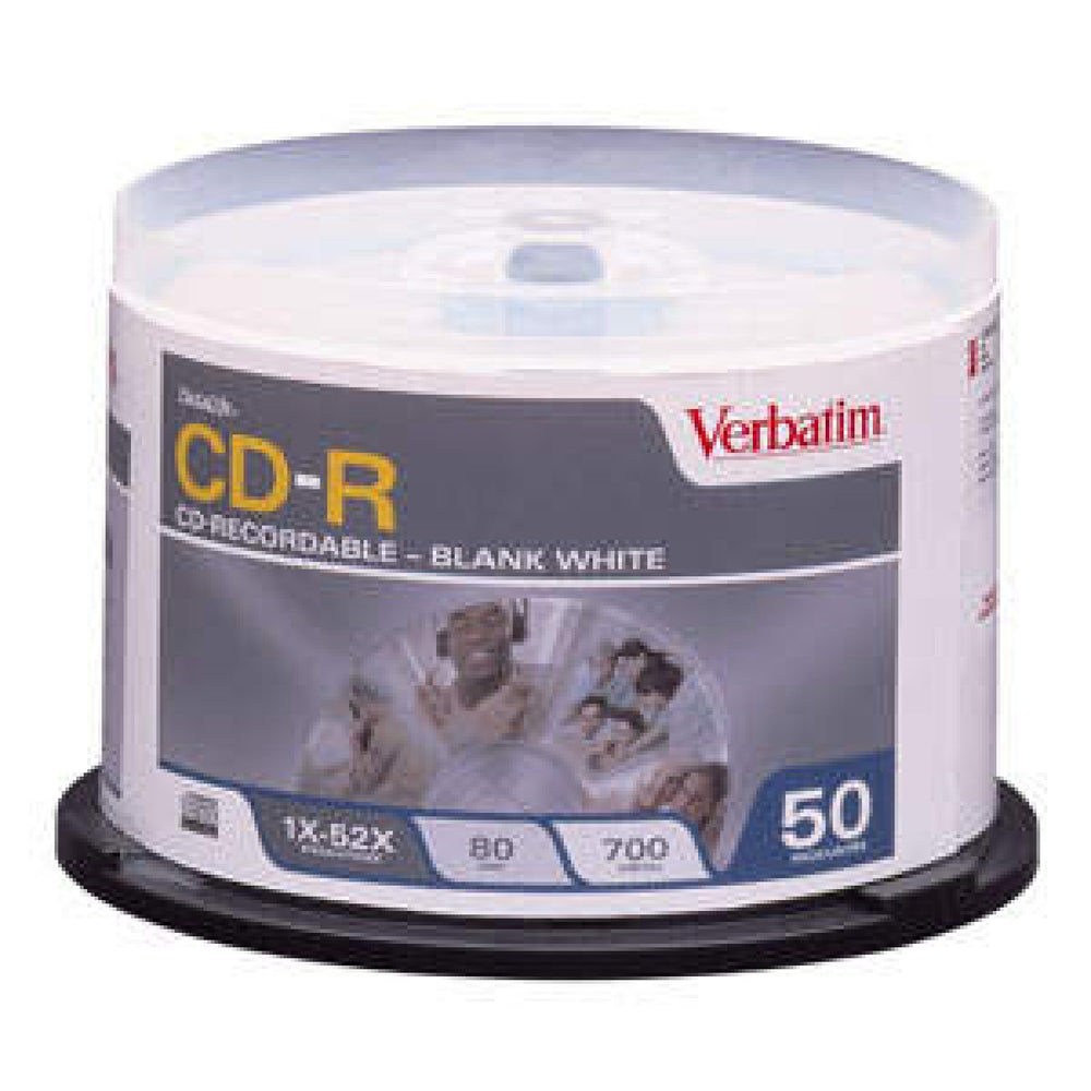 Verbatim Cd-R 80Min, 52X Inkjet Hub White 700Mb 50 Per Pack