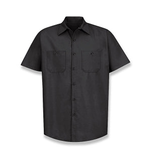 Product Information: Men's Short-Sleeve Industrial Solid Work Shirt, 65% Polyester/35% Cotton, Black, Size M