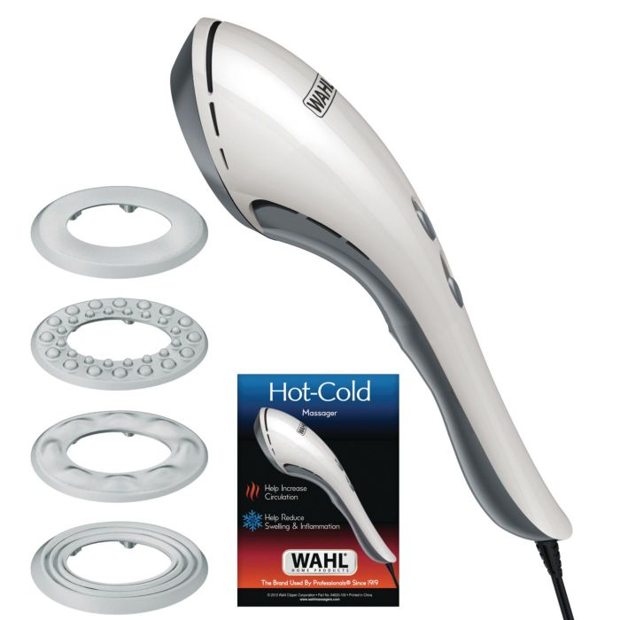 The Hot & Cold Therapeutic Massager offers soothing hot and cold therapy in one massager. It features 2 speeds for gentle or deep massage. The massager heats to 130°F and cools to 48°F. Includes 4 attachments. Weighs 2 lbs.