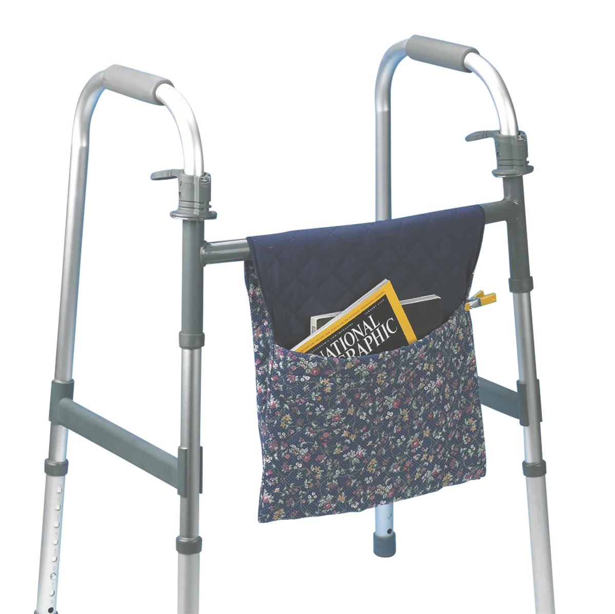 - Hangs over the crossbar of the walker