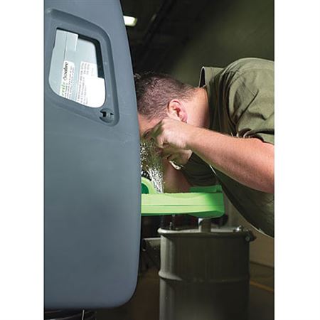 - Hands-free eyewash station clears out both eyes at once and allows users to hold open eyes during use