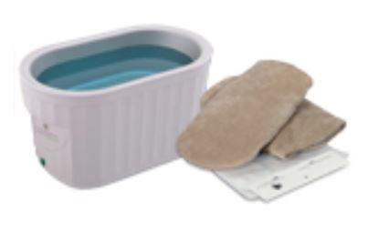 Fully insulated, this heavy-duty bath is energy efficient for low-cost operation, with thermostatic control to maintain a medically-prescribed temperature automatically. The large inner tank fits hands, feet, and elbows, yet the compact outer case requires little counter space (14-3/8" x 8" x 7-3/4"). CETL and CE listed. Kit contains bath, 6 lbs. ScentFreeTM paraffin, a pair of insulated mitts and box of 100 liners.